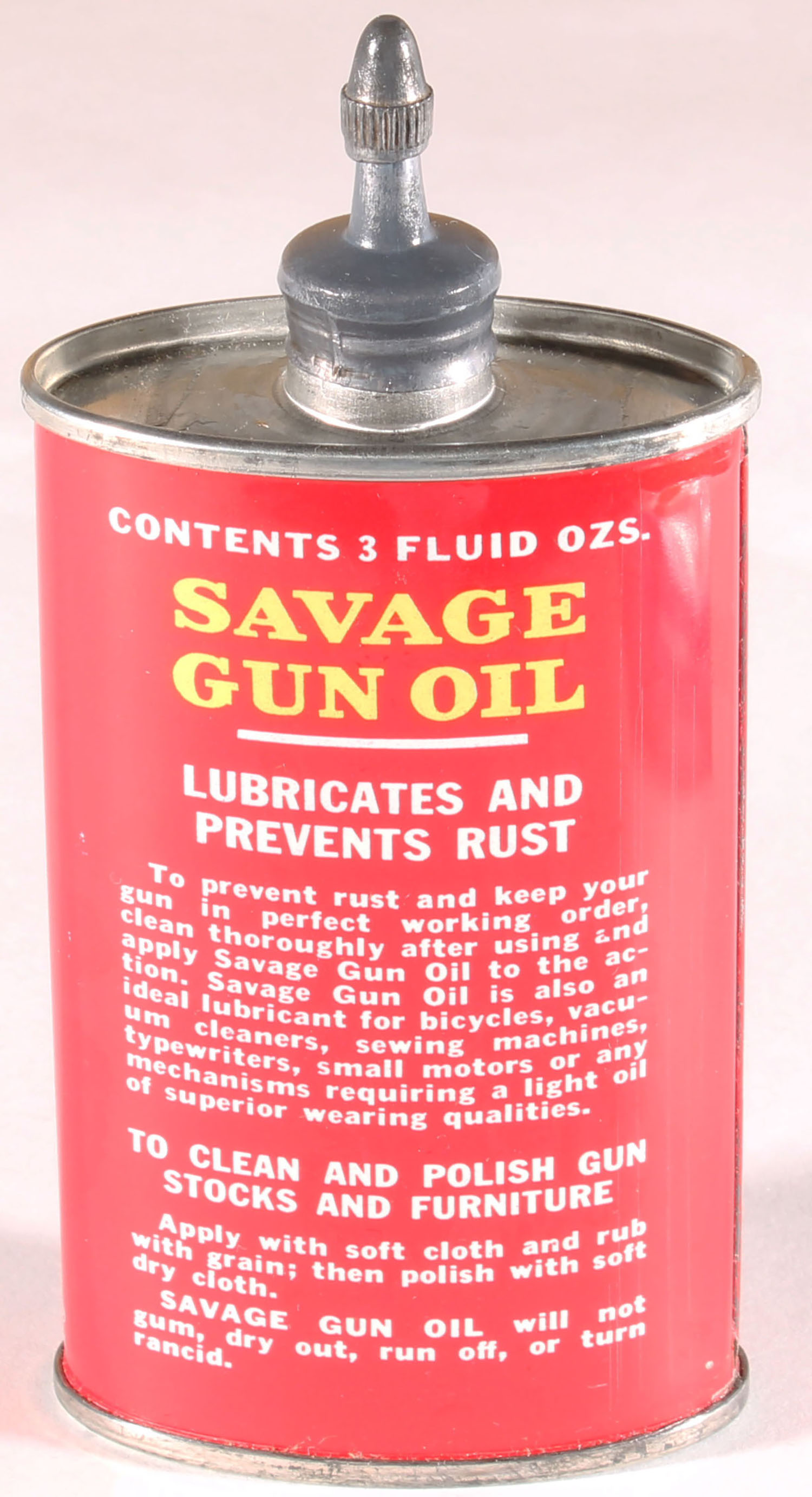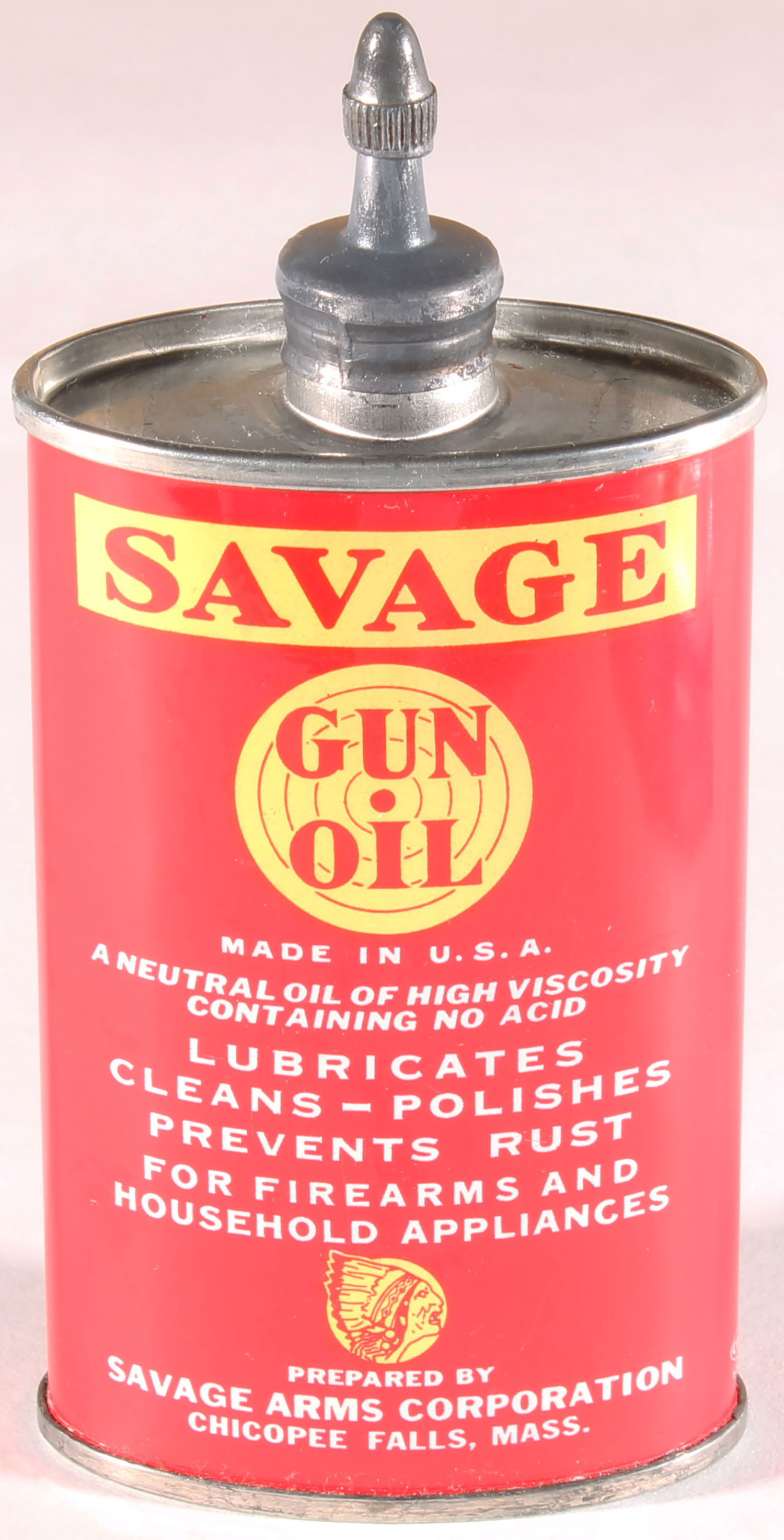 RARE! SAVAGE Oil Tin, lead cap, FULL, NOS(never snipped open) very bright and clean. Grade: Excellent ++ - Value: 100 to 300