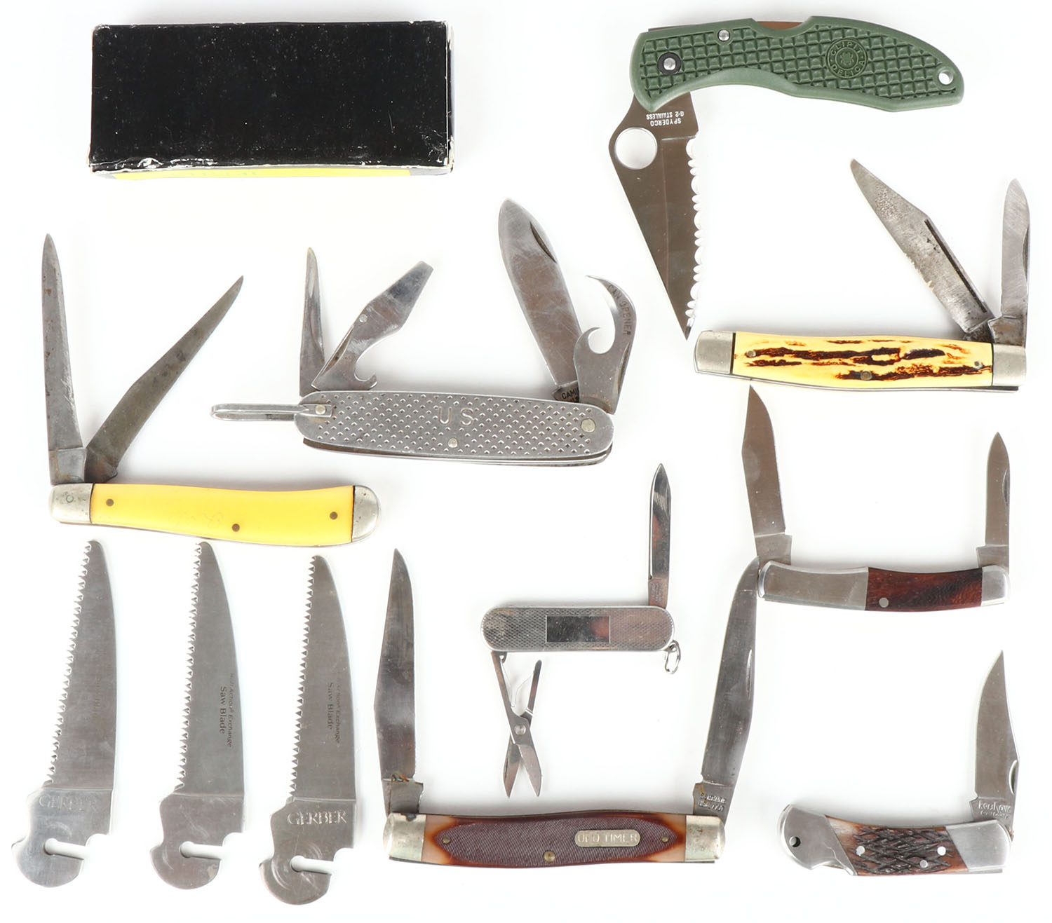 Large lot of folding knives. Grade: Excellent - Value: 40 to 200