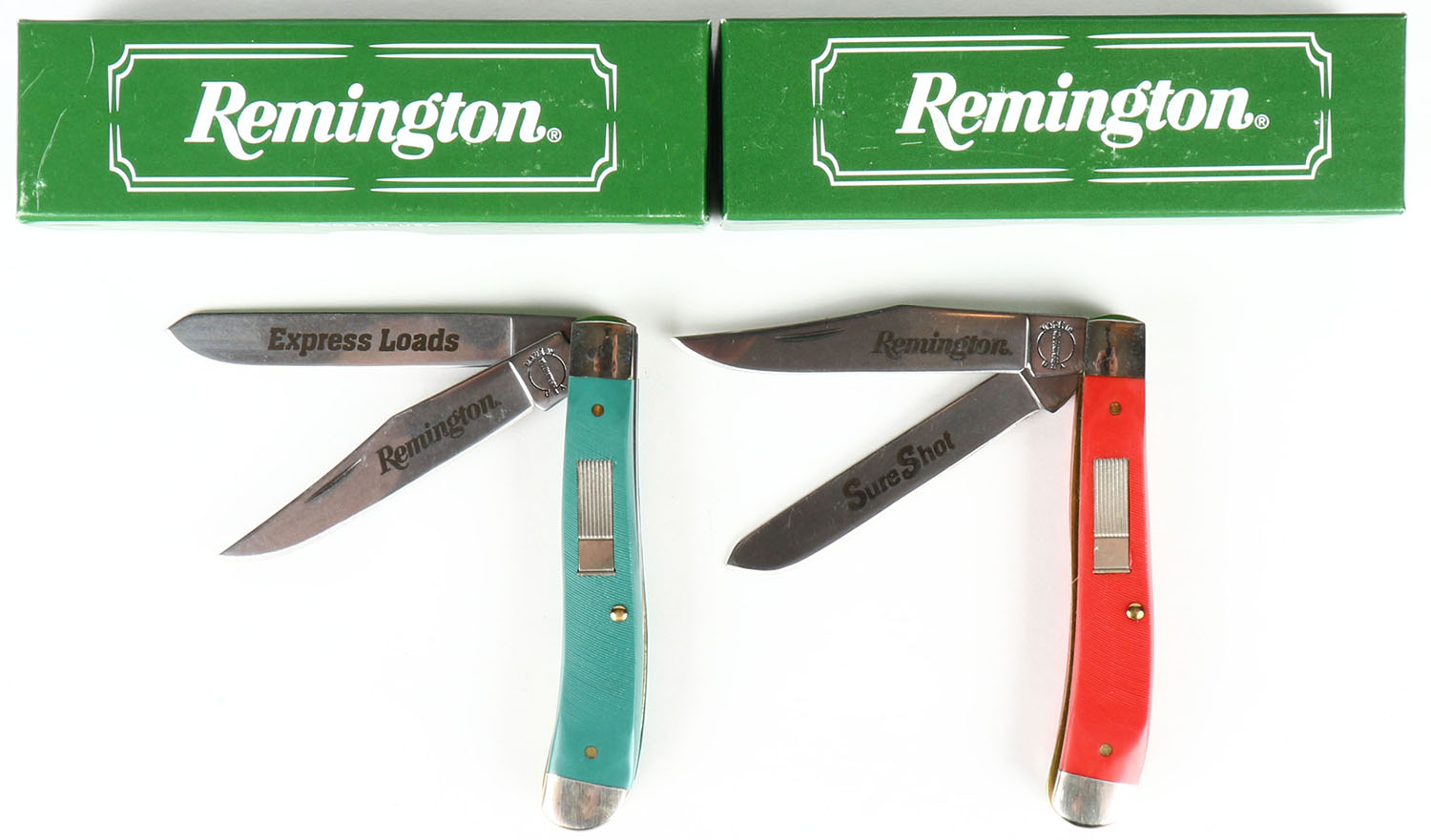 Lot of 2 Remington folding knives, in boxes. Grade: Excellent ++ - Value: 16 to 50