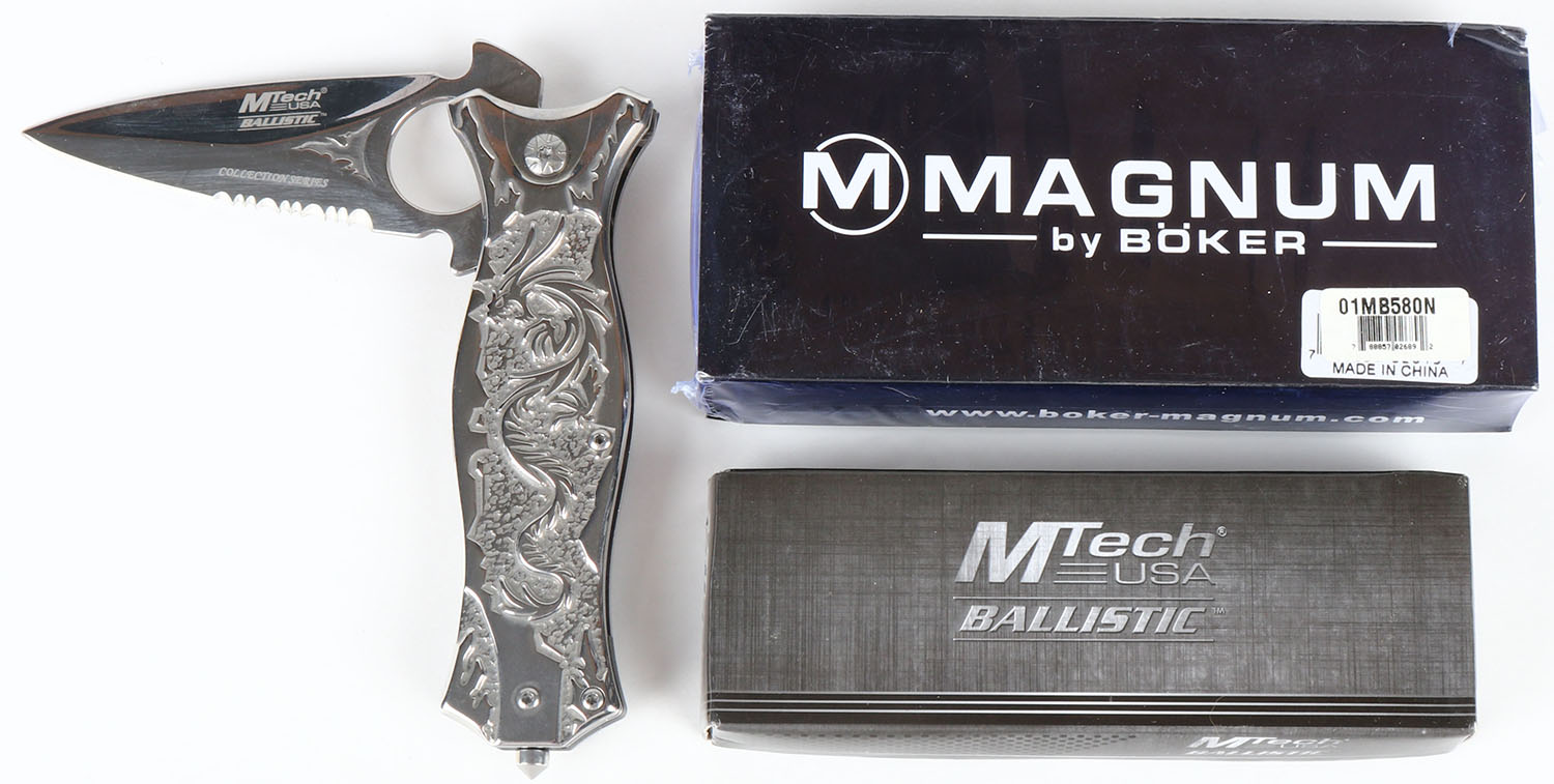 Lot of 2 folding knife, Mtech and Magnum Boker and has original box! Grade: Excellent ++ - Value: 6 to 50