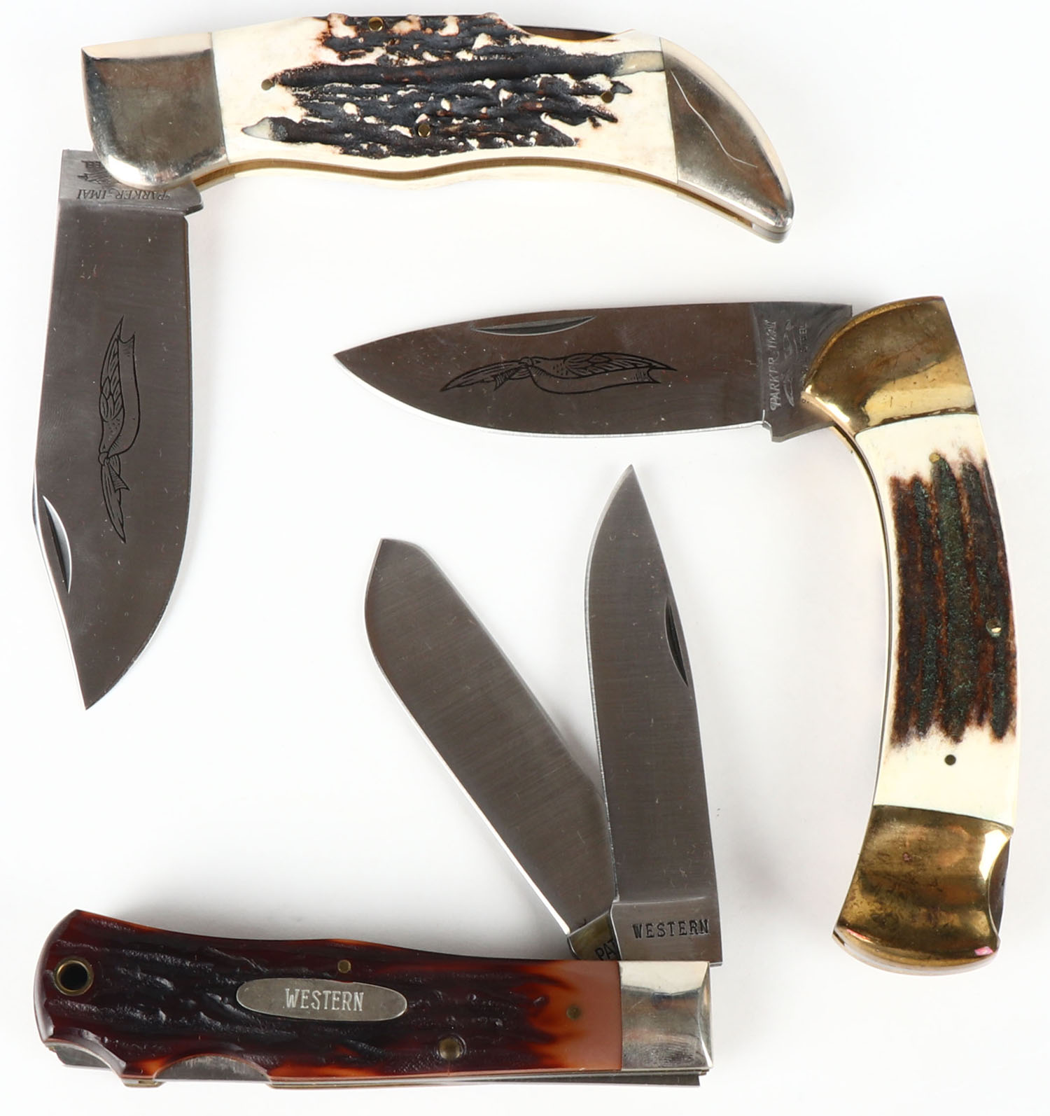Lot of 3 Large folding knives, no boxes. Grade: Excellent ++ - Value: 20 to 60