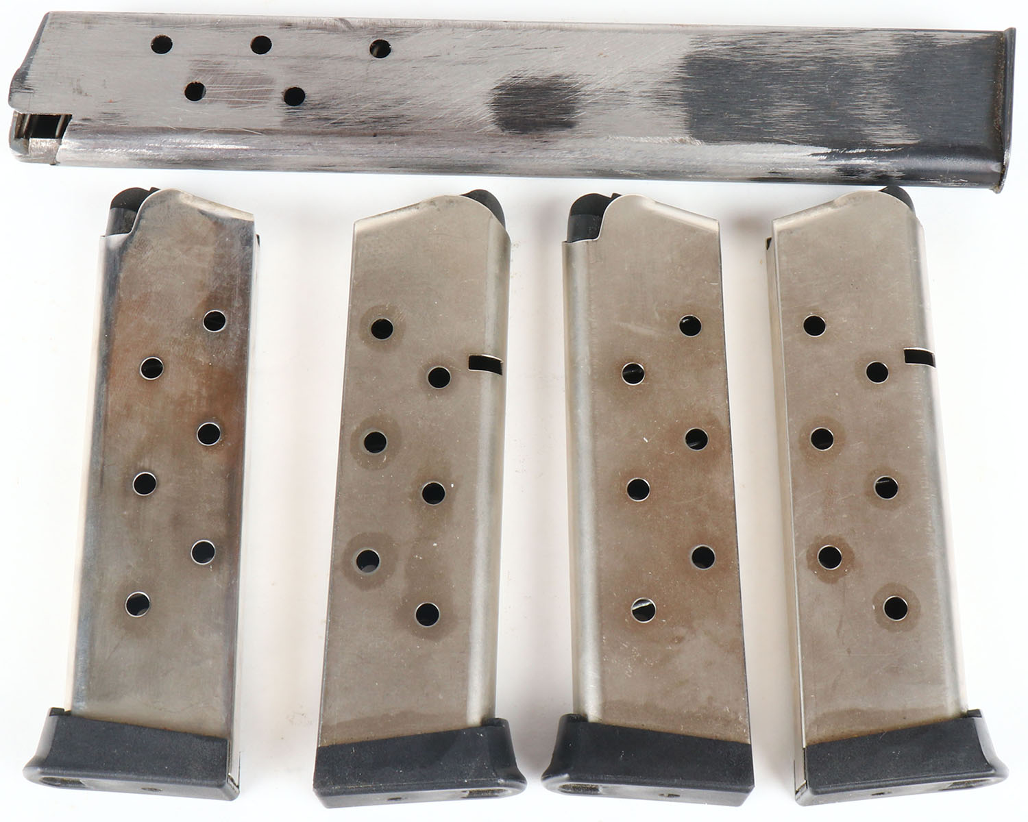 Lot of 5 pistol mags matbe for 1911, 4 smaller unamkred mags and 1 very large unamrked mag . Grade: Excellent - Value: 20 to 60