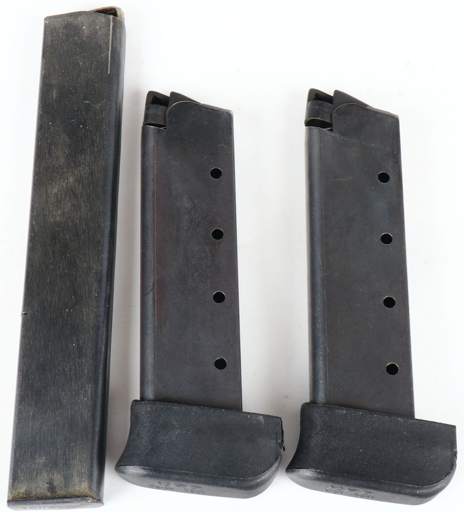 Lot of 3 1911 pistol mags, 2 10 rd mags, and large mag maybe 20 rd. Grade: Excellent - Value: 20 to 60