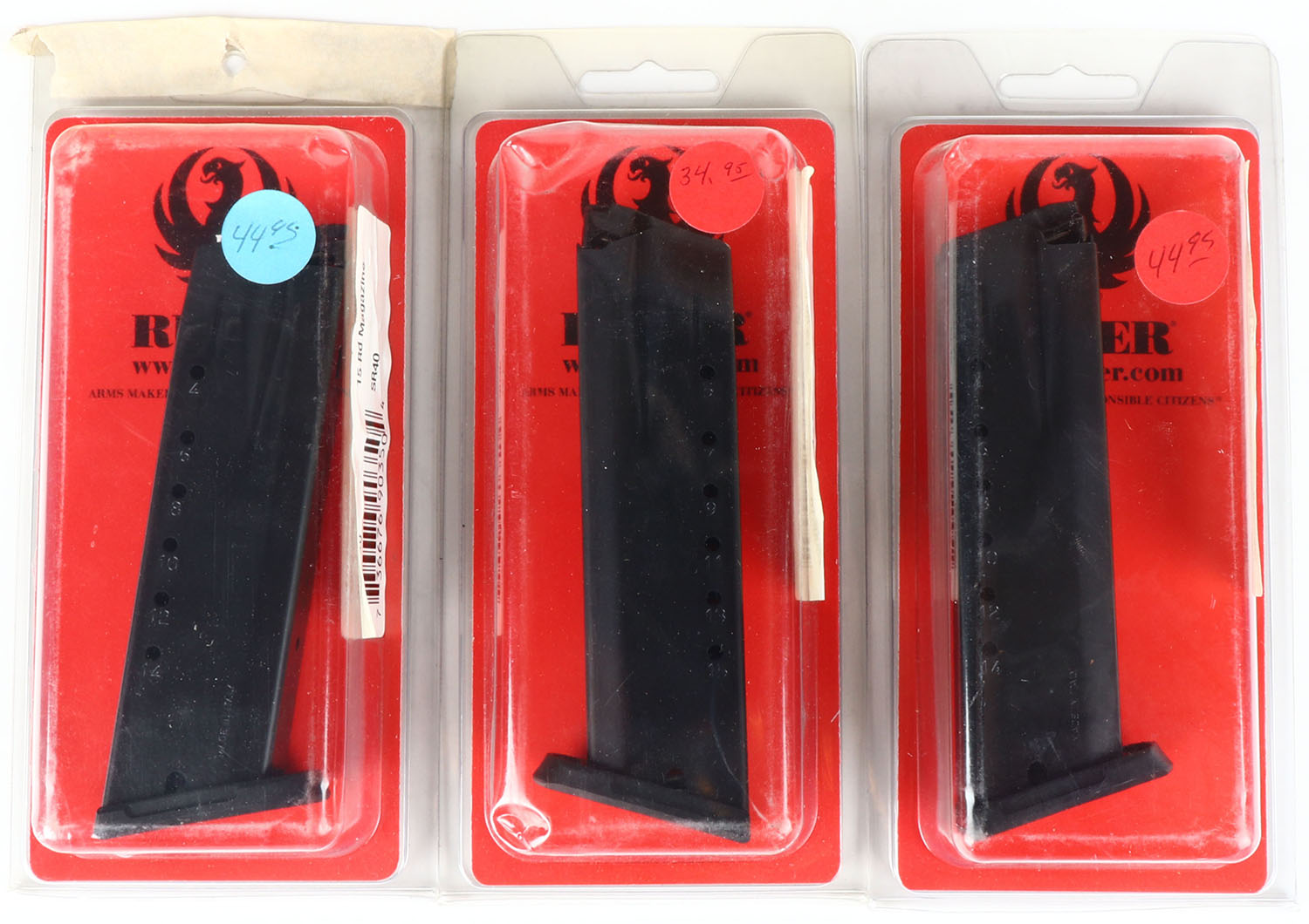 Lot of 3 Ruger SR40 40 S&W 15 rd pistol mags. Grade: Excellent ++ - Value: 20 to 60