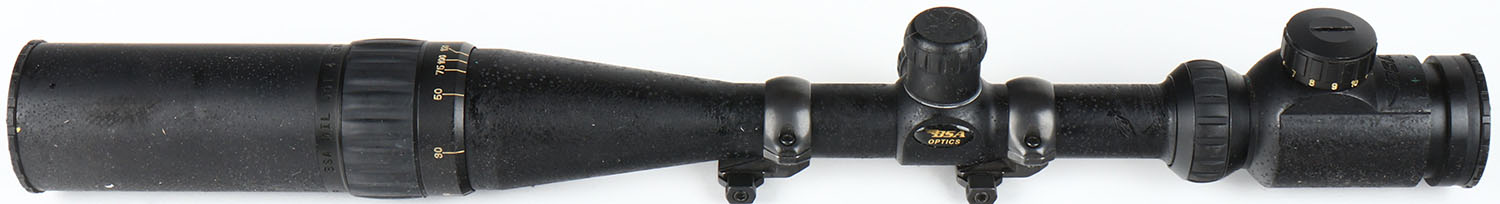 BSA 4-16X40 IR rifle scope, sticky residue all over outside. Grade: Very Good - Value: 20 to 300