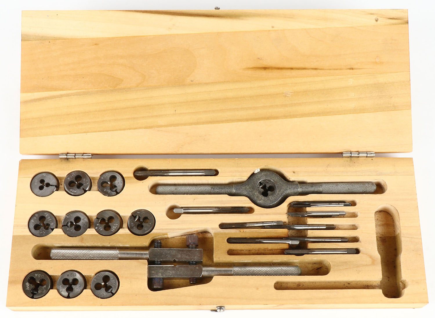 Brownellsthread cutters tool in wood box. Grade: Excellent ++ - Value: 10 to 50