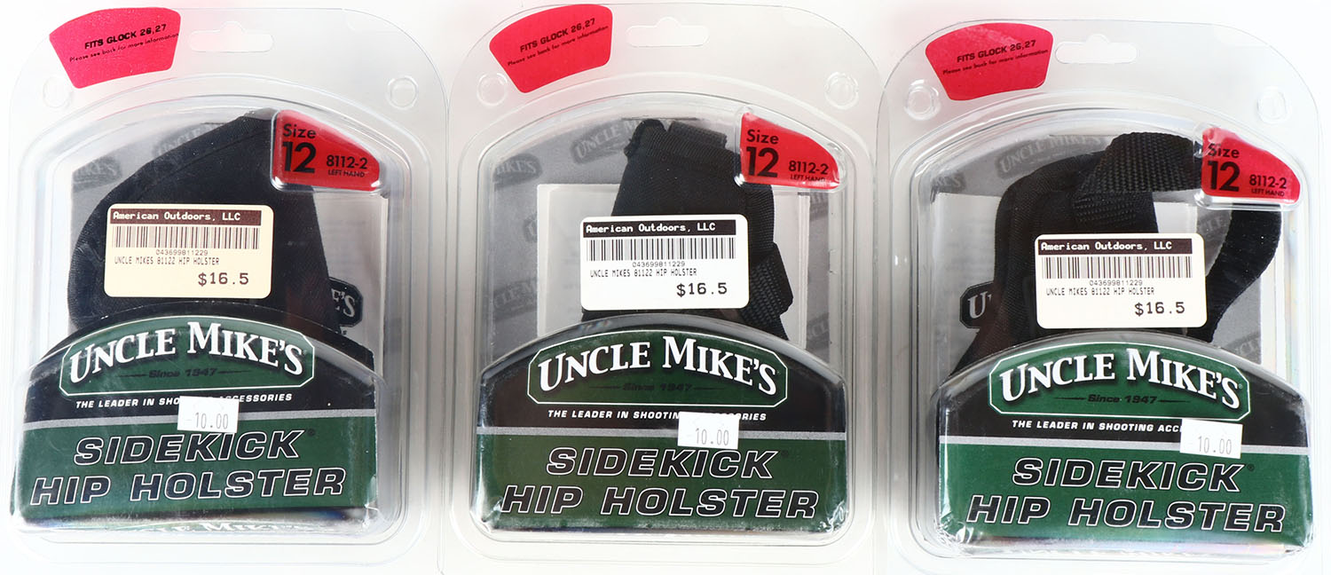 Lot of 3 Uncle Mikes pistol holster size 12. Grade: Excellent - Value: 16 to 50