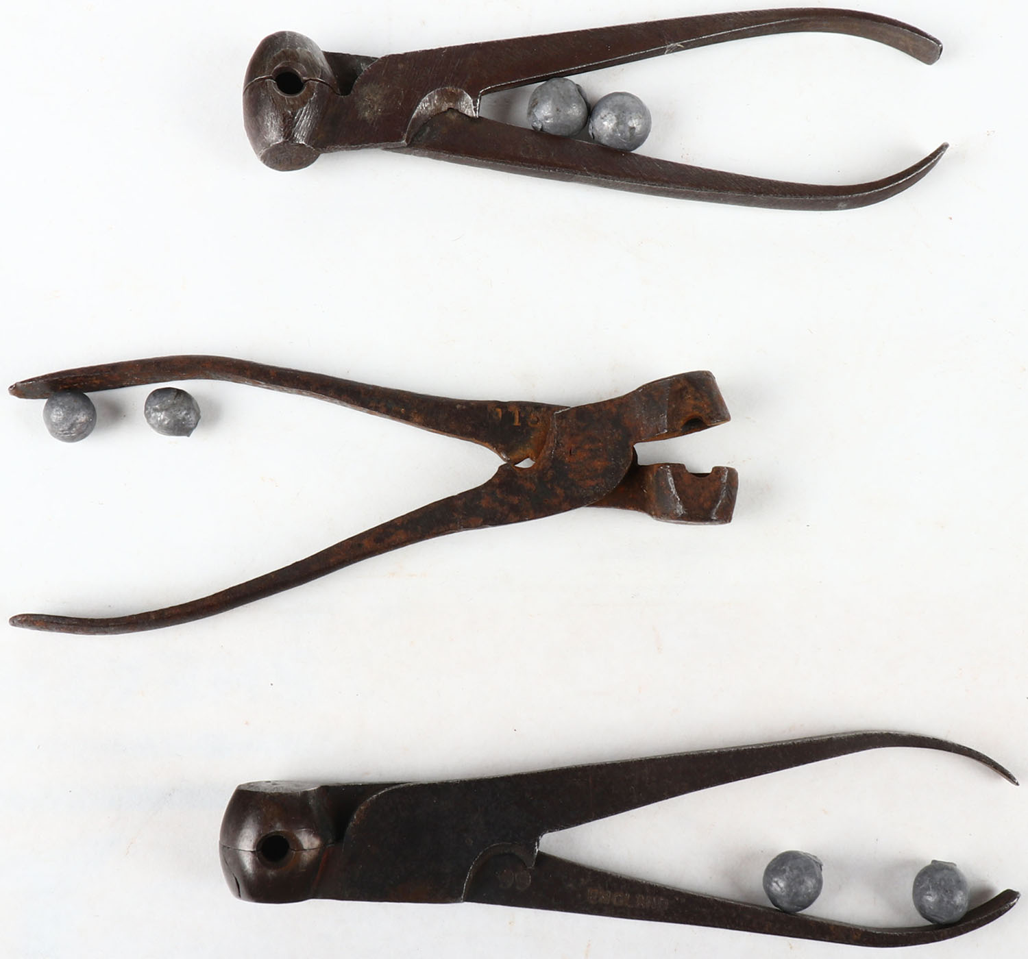 Lot of 3 bullet mould reloading tools, .420, .370 and .330 cal single cavity round ball moulds. Grade: Excellent - Value: 20 to 60