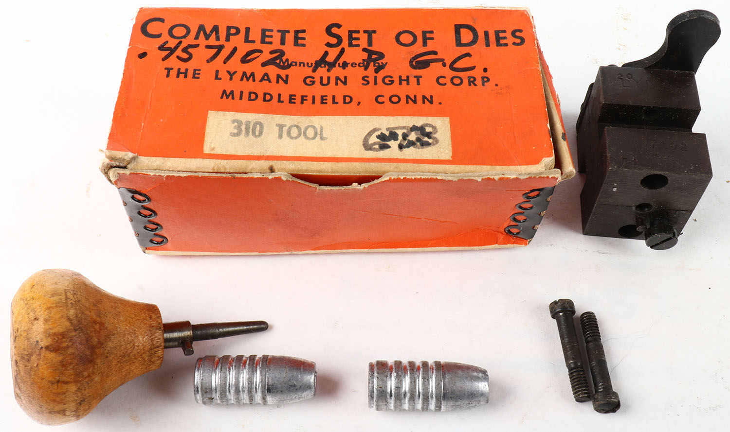 Lyman Ideal bullet mould block in orignal boxes, #457102 HP bullet moulds. Grade: Excellent - Value: 16 to 50