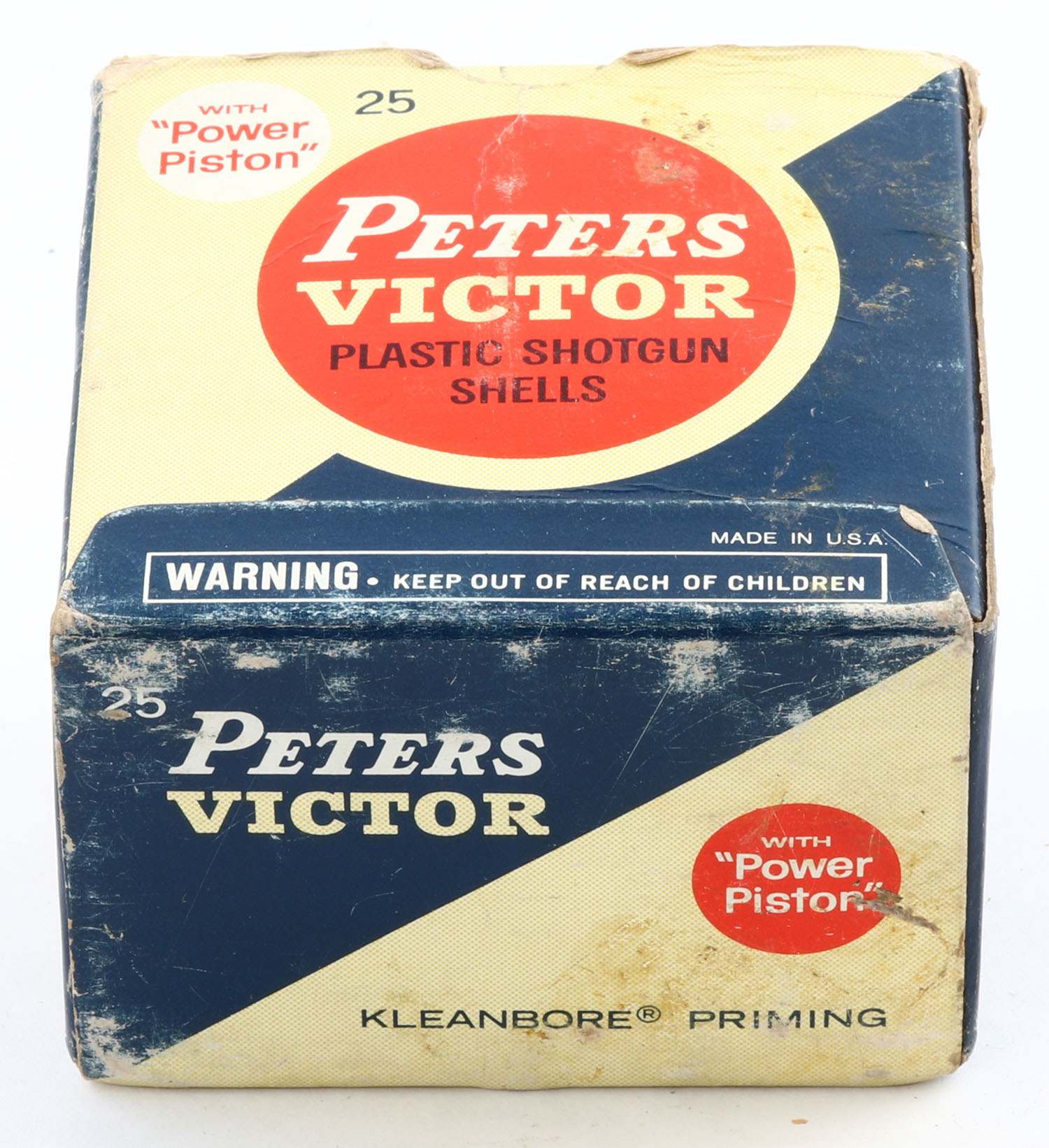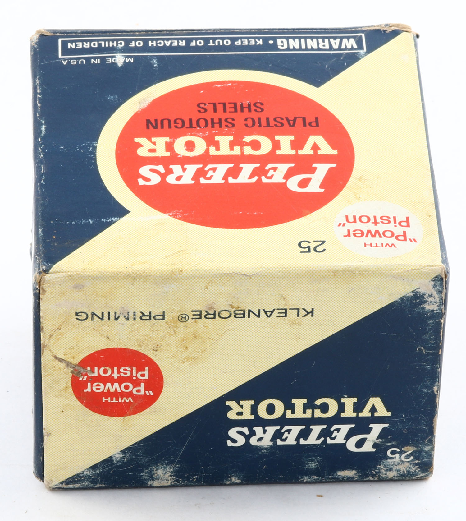 Peters, VICTOR, 20ga., 1pc., Full of shot size 9 shells, shot size 6, orange, blue & tan box, box has scuffing & edge wear, paper shells are very good. Grade: Very Good - Value: 10 to 30