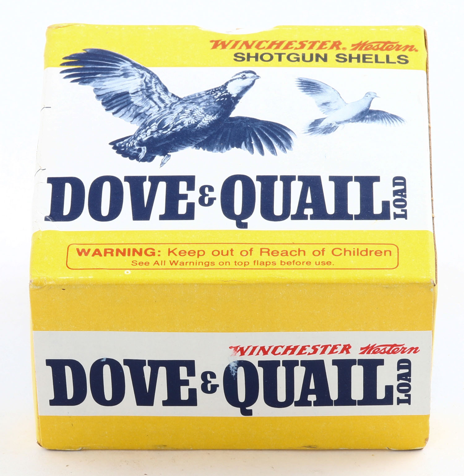 Winchester-Western, Dove & Quail, 12ga, 1pc., Full, multi-colored box, shot size 8, box is very solid with excellent colors, plastic shells are excellent. Grade: MINT - Value: 10 to 30