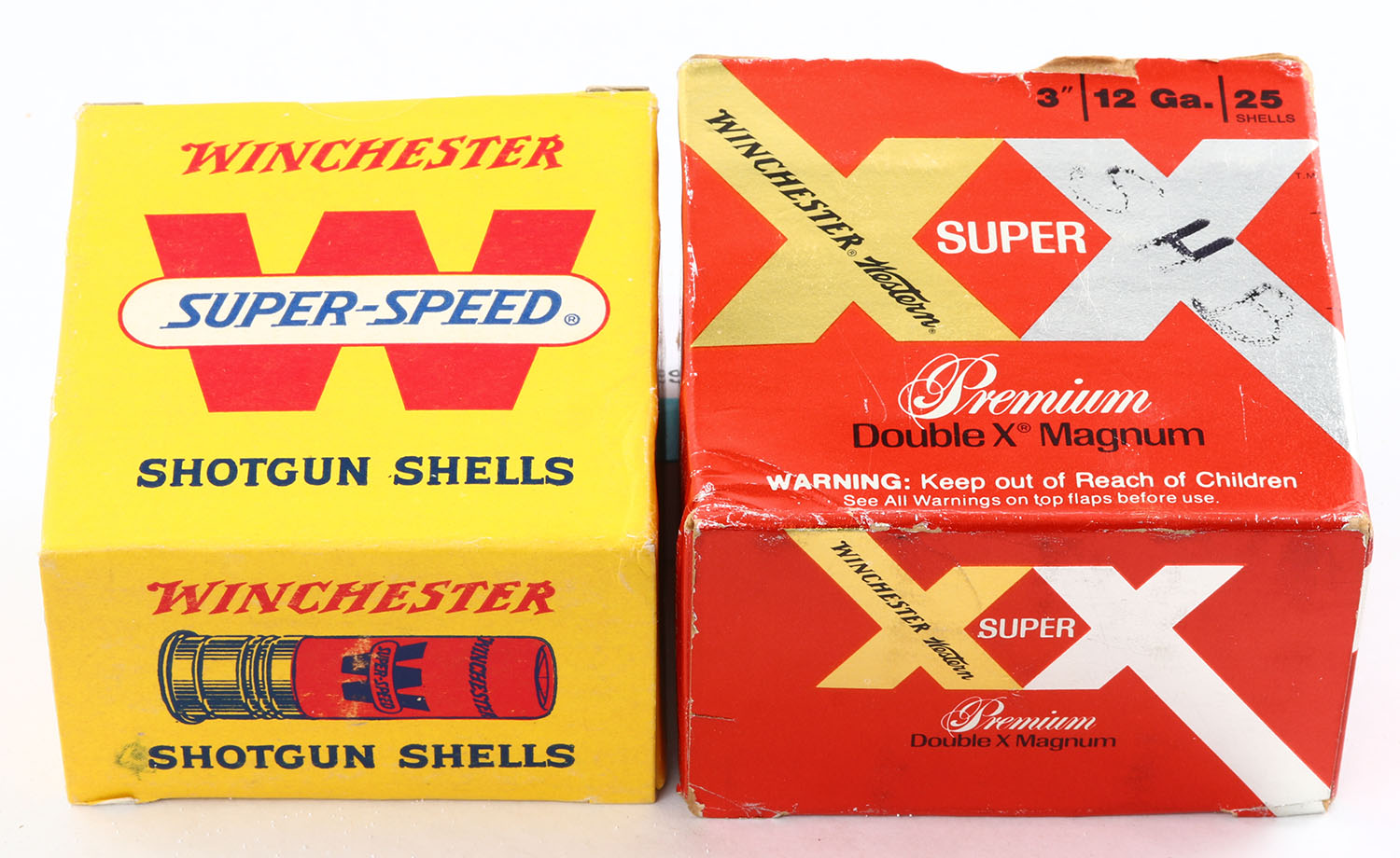 Lot of 2 Winchester, 12ga & 16ga., 1pc., Appears Full, shot size 2 & 6, multi-colored boxes. Grade: Very Good - Value: 10 to 30