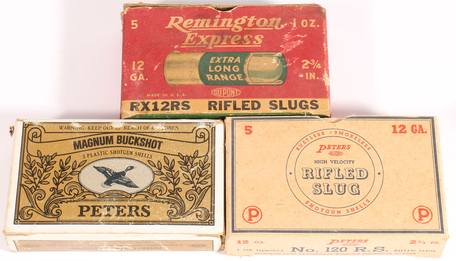 Lot of 3, Mixed Manufacture, 12ga., Appears Full, shot size Rifled Slug, Shotshell boxes. Grade: Very Good - Value: 10 to 30