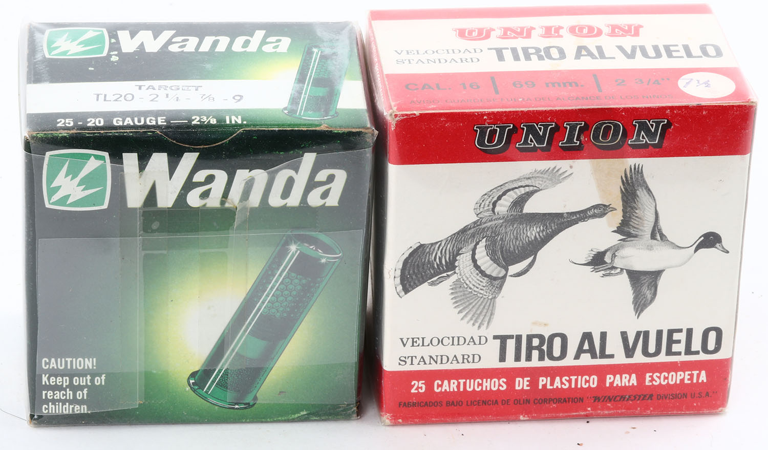 Lot of 2, Mixed Manufacture, 16 & 20ga., Appears Full, shot size 7 1/2 & 9, Shotshell boxes. Grade: Excellent - Value: 10 to 40