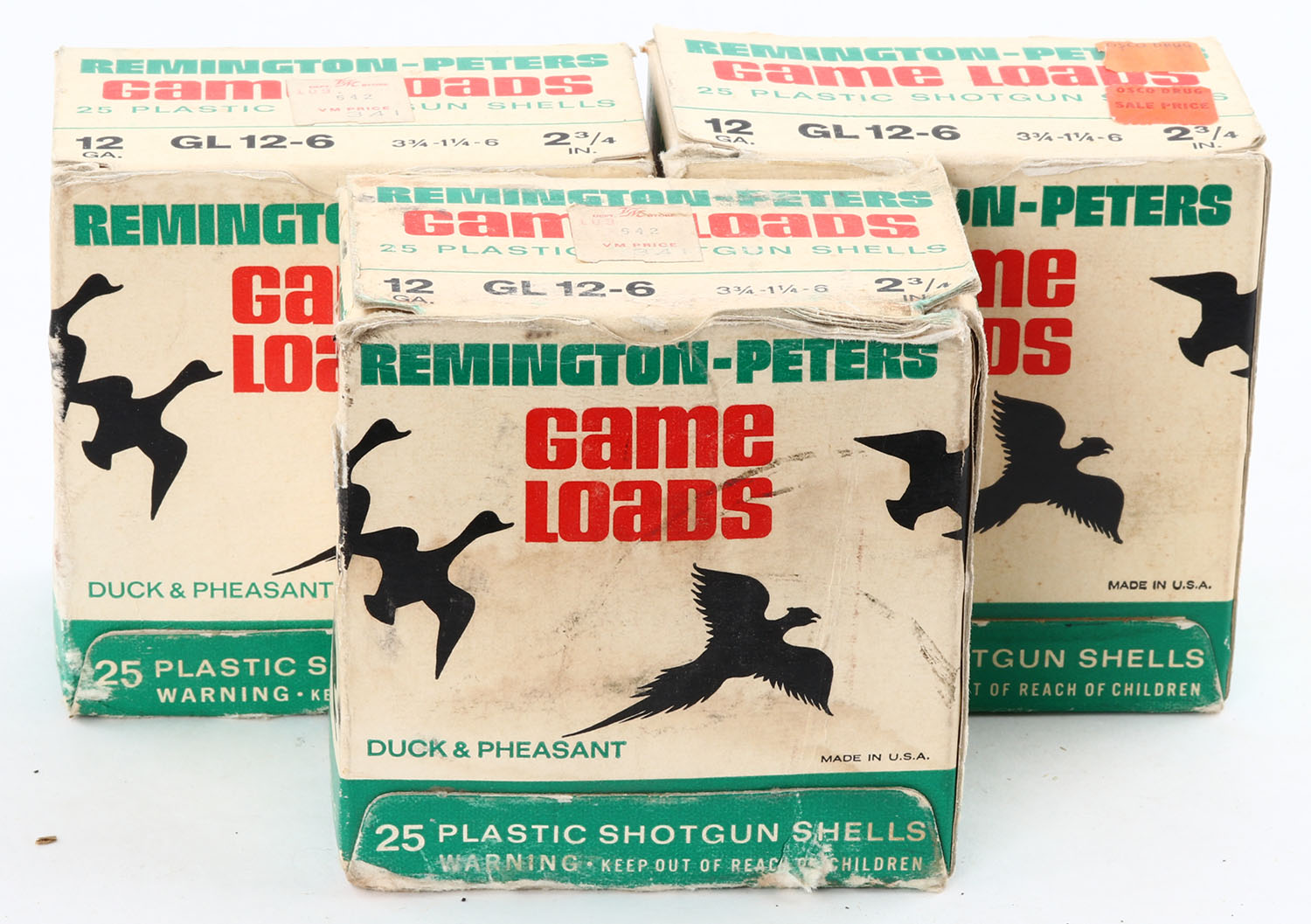 Lot of 3, Remington-Peters, 12ga., 1pc., Appears Full, shot size 6, Shotshell boxes. Grade: Very Good - Value: 10 to 40