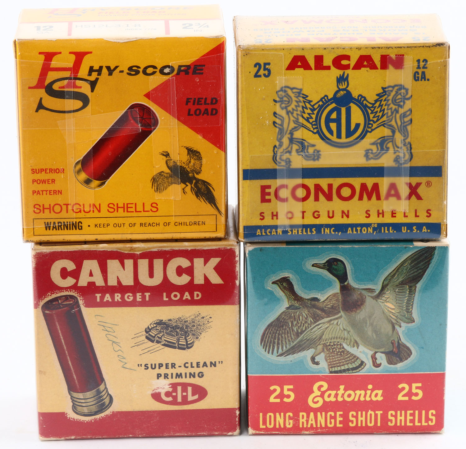 | Lot of 4, Mixed Manufacture, 12ga., Empty, shotshell boxes. Grad...