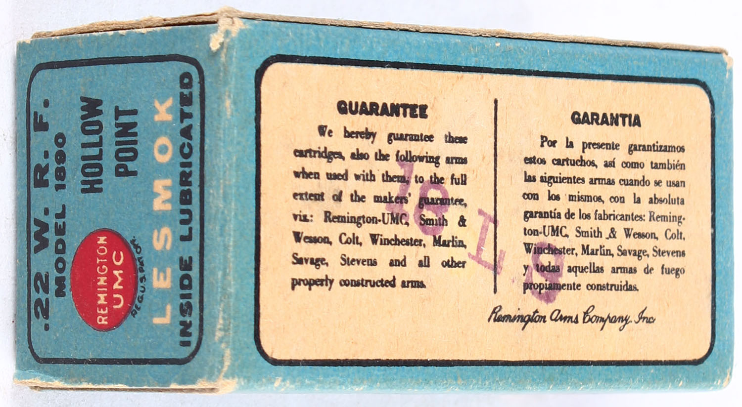 | REM-UMC, R.F. Lesmok Cartridges, .22 W.R.F. Hollow Point, RHWeb:...