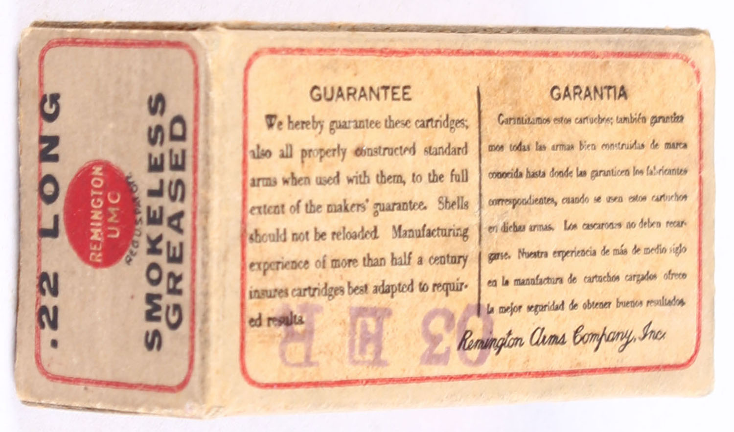 | REM-UMC, R.F. Smokeless Cartridges, .22 Long, Greased, RHWeb: RE...