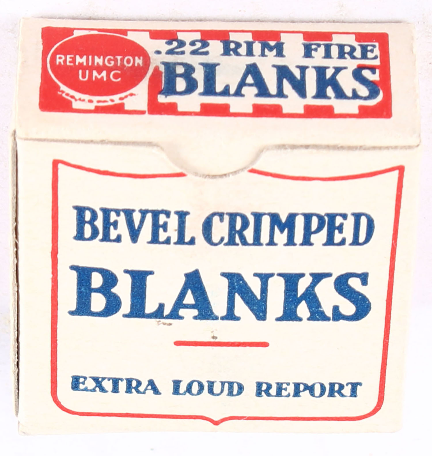 Remington, Blank Cartridges, .22 Rim Fire Blanks, R9, RHWeb: REM-7.1B SB-1, Full, 1pc. Buff red & blue box, box is near mint with minty color, only very minor corner wear, edges are crisp, end flaps are solid, ammo is excellent. Grade: Excellent ++ - Value: 20 to 30