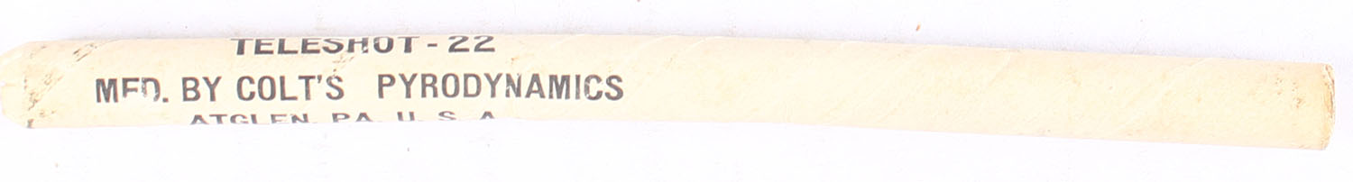 Colt's Pyrodynamics, Teleshot - 22, .22 Long Rifle, Not in RHWeb, FULL & SEALED, buff paper tube with black printing, tube is solid with very good to excellent color, minor age soiling. Grade: Excellent + - Value: 30 to 45
