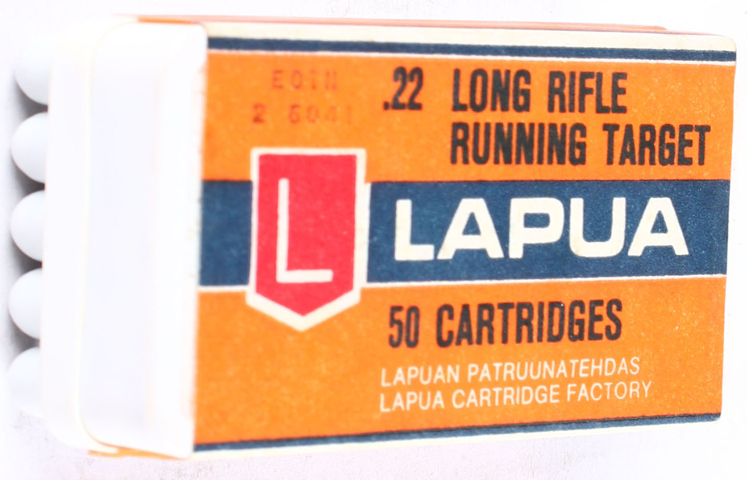Lapua, Running Target, .22 Long Rifle, RHWeb: (Finland) L-4 LR-7b, FULL & SEALED, 2pc. White egg carton style plastic box with orange blue & red sealing label, box is MINT with minty color, label is intact. Grade: MINT - Value: 10 to 15