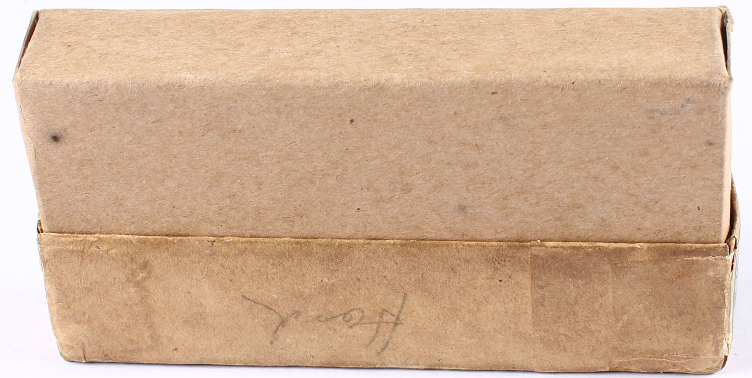 Winchester, .30 Winchester Smokeless, Model '94, 160 Grains Metal Patched Bullet, Full, 2pc. Buff box with green label, box is solid with very good color, shelf & edge wear, minor corner wear, labels are intact, ammo is very good. Grade: Very Good - Value: 30 to 45