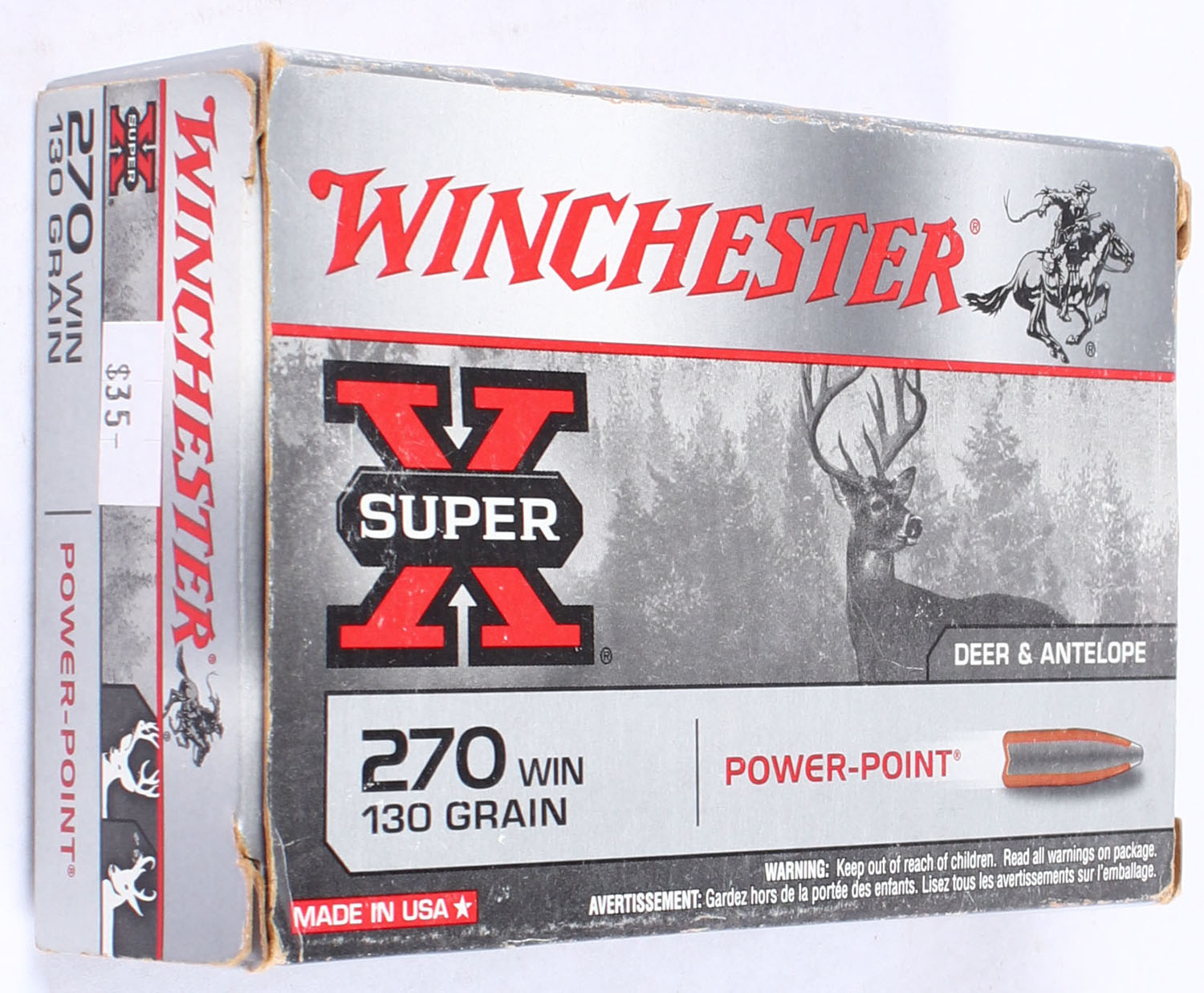 Winchester, Super-X, .270 Winchester, 130 Grain Power-Point, Full with 17rds, being correct, 1pc. Gray & red box, box is very solid with very minor corner wear, ammo is excellent. Grade: Excellent - Value: 16 to 24