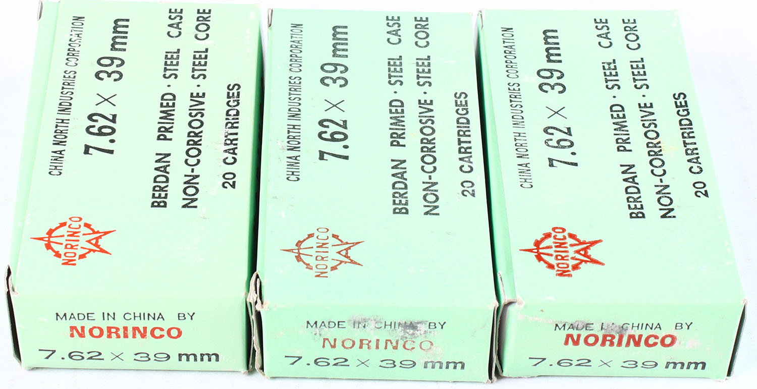 | Norinco, Lot of (3), 7.62 x 39mm, Full, 1pc. Green boxes, boxes ...