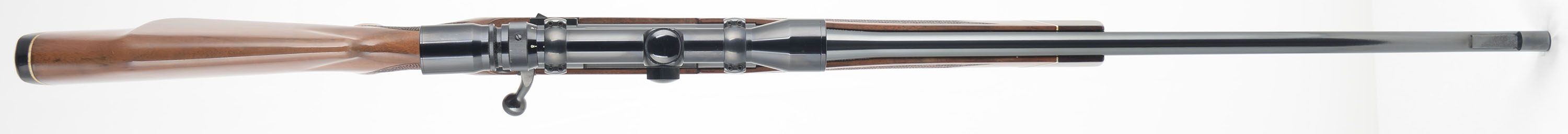 Dickson-Howa, Model Golden Bear, CAL: 30-06 SPRG, MFG: 1967, SN: A2448H, Bolt Action Rifle, 24 1/2'' barrel, Howa of Japan presented the Howa Golden Bear bolt action rifle at the Chicago Shot Show in 1967. Approximately 3000 Golden Bear rifles were exported to U.S.A & passed all the tests at HP White Laboratory, which is one of the worlds most prestigious firearms testing laboratories. After the introduction of the rifle, Howa won the fame & acceptance in the U.S market. As most Sako enthusiast are aware, the ''Golden Bear'' was an almost exact copy of the Sako Finnbear. Conventional wisdom is that Sako sued Howa for patent infringements, which stopped the production & sale of the Golden Bear. The original skip line checkered, cheeked & capped pistol grip Monte Carlo walnut stock is excellent, with rose wood slant-cut forend tip & pistol grip cap. The original finish is very good, but has started to haze some & has a couple of areas of discoloration. There are a few light scratches & contusions to wood & finish. The original metal blue finish rates 98% overall. Bore is excellent. The receiver carries a Bushnell Sportview scope, while the barrel has a hooded ramp front sight. Stock carries the factory buttplate. Sling studs. A very nice, high quality & fairly rare hunting rifle. FFL or C&R Req. - Value: 400 to 800