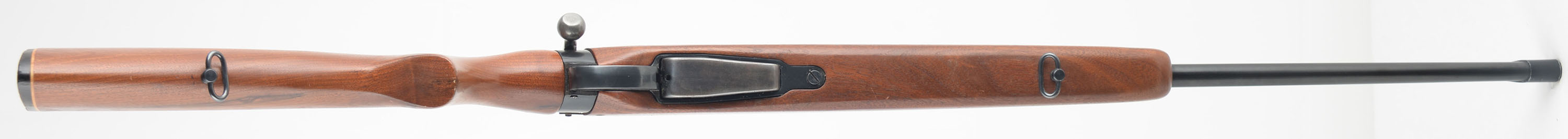 Golden State Arms, Model Mountaineer Santa Fe Lee Enfield, 303 British Cal., MFG. 1942-45 (receiver), SN: 2480, Bolt Action Rifle, 22'' Round barrel, This is a sporterized SMLE No. 4 MK.1 of WWII production. The updated flat pistol grip wood stock, original to the Golden State Arms sporterizing, is excellent, with a few minor handling marks, scratches & contusions to the excellent original finish. The original metal blue finish rates 70% overall. The barrel carries the original rear & ramped blade front sights. Bore is excellent & bright. Stock carries a Santa Fe black plastic buttplate. Sling loops. Detachable 5 round mag. FFL or C&R Req. - Value: 200 to 400