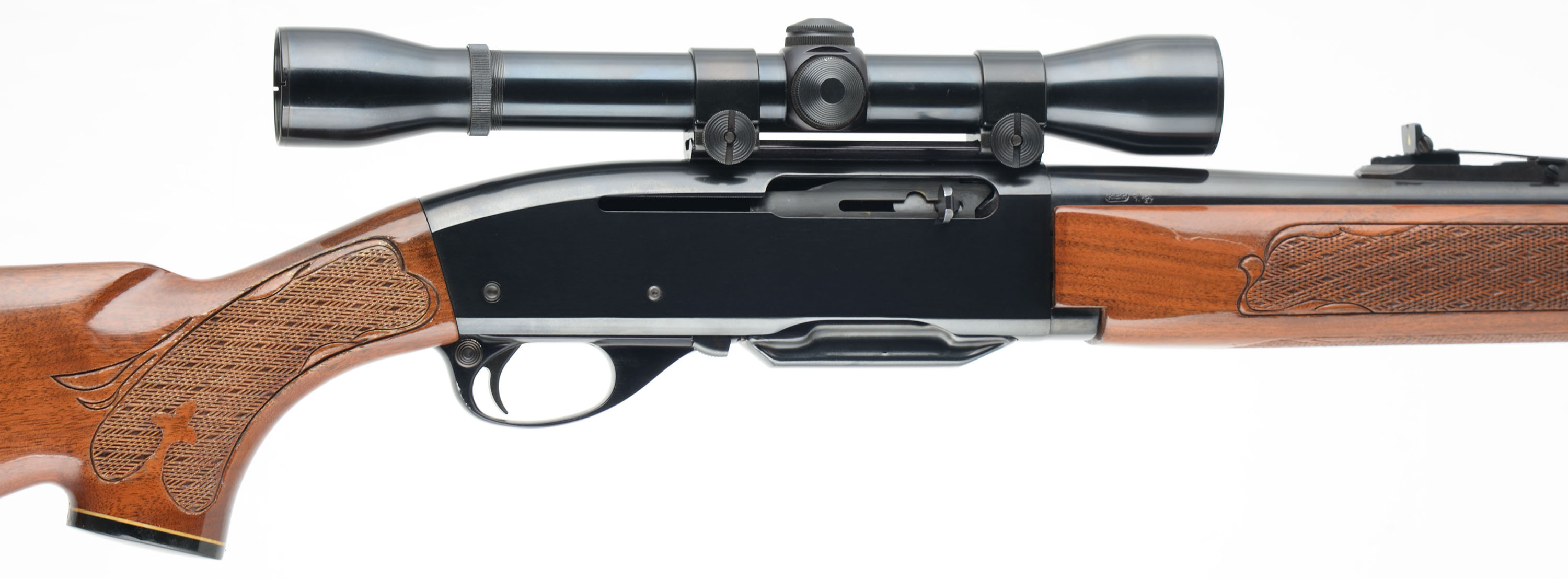 Remington, Model 742 Woodsmaster, CAL: 30-06 SPRG, MFG: 1968, SN: 363384, Semi Auto Rifle, 22'' barrel. The original checkered & capped pistol grip walnut stocks are excellent. There are some very minor handling marks to the excellent original finish. The original metal blue finish rates 99% overall. Bore is excellent. The receiver carries a Weaver K4-C3 scope mounted Weaver mounts, while the barrel holds factory sights. The stock caries the factory buttplate.. Detachable mag. Sling studs. Overall excellent & original condition. FFL & C&R Req. - Value: 600 to 1000