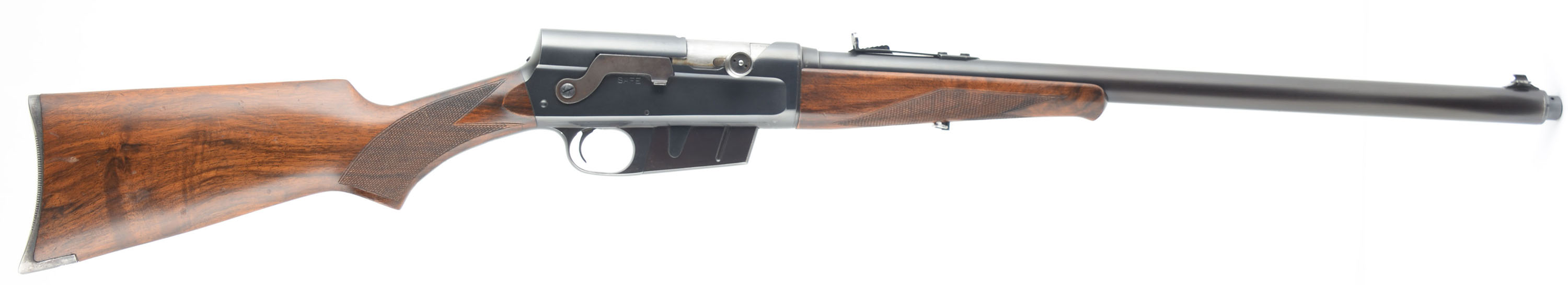 Remington, Model 8 ''C'' Grade (Deluxe), marked .32 Rem Cal., MFG: 1932, SN: 65991, Semi-auto take-down rifle, 22'' barrel, The original deluxe checkered & flat knob pistol grip wood stocks are excellent & solid. The inside of the forend is stamped with a 3 for grade ''3'' or ''C'' grade, & they display hand checkering cut at 20 lines per inch. This is a late production rifle & as a ''C'' grade, the stock still carries the cheeks at the wrist of the early production rifles. There are minor scrapes, scratches & contusions to the original finish, which also has a very thin layer of a protective added layer. The wood appearance is overall excellent. The original metal blue finish rates 95%, with the loss due to some density thinning on the safety, mag & lower tang. Some areas of the blue are starting to tone a lovely plum, which is typical of the late model 8 & early model 81 rifles. The barrel carries the standard adjustable rear & front sights. Bore is excellent, clean & bright. Stock carries the popular serrated lower tang crescent metal buttplate. 5 rd fixed magazine. Tight action. A rare & fantastic original ''C'' grade deluxe rifle, which is highly collectible. FFL or C&R - Value: 2500 to 3000
