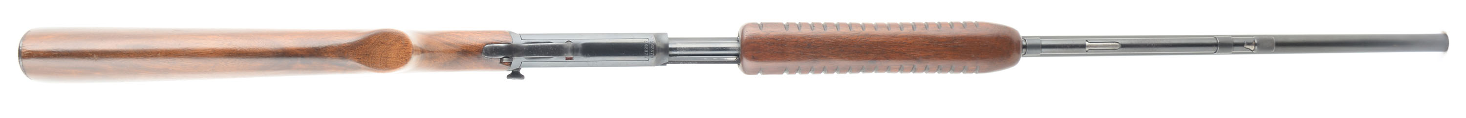 Winchester, Model 61, CAL: 22 S, L & LR, MFG: 1950, SN: 142379, Pump Action Take-down Rifle. 24'' tapered round barrel. The factory flat knob pistol grip wood stocks are excellent, displaying few minor contusions or scuffs to the excellent original finish. There is a small corner chip next to the pump release button on the wrist & a tight 2'' crack on the belly of the forend. The original metal blue finish rates 95% on barrel & mag tube, 90% on the receiver, with spotty loss on the receiver. Bore is excellent. Standard open sights. Factory checkered metal buttplate. Overall, an excellent condition & beautiful 61 rifle. FFL or C&R Req. - Value: 600 to 1000