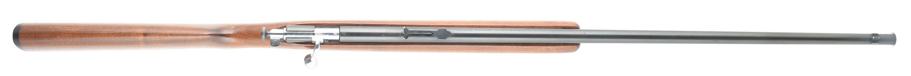 Winchester, Model 67A Sporting, CAL: 22 S,L,LR, MFG: 1949-63, SN: NONE, Bolt Action Rifle, 27 1/8'' barrel. The original flat pistol grip stock is excellent, having been expertly refinished, with a couple light scratches to the excellent finish. The metal blue finish on the barrel/receiver rates 90%, with a couple of areas touched up after cleaning of light pitting. Bore is excellent. Standard adjustable rear sight & blade front sight. Winchester checkered plastic buttplate. Chromed bolt, bolt handle & trigger. Excellent overall appearance. FFL or C&R Req. - Value: 300 to 500