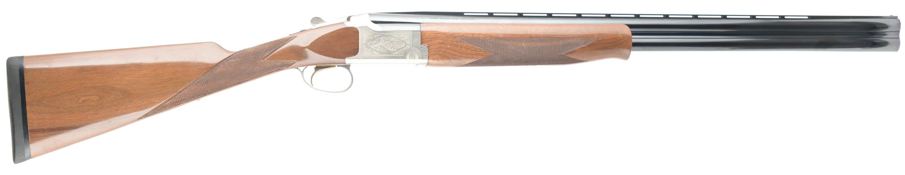 Browning (Japan), Citori Feather Superlight, CAL: 16GA, MFG: Modern, SN: 23009ZM131, Break Action O/U Shotgun, Choke: IC/MOD, 2 3/4'' Chamber, 26'' barrels. Standard factory markings. The original straight grip wood stock is excellent. There are minor handling marks & scrapes to the original high gloss finish. The original metal blue finish on the barrels rates 98% & the laser engraved coin silver receiver is excellent. Bores are excellent. The ventilated rib holds a single front bead. Strock has a solid black rubber recoil pad. FFL Req. - Value: 1200 to 2000