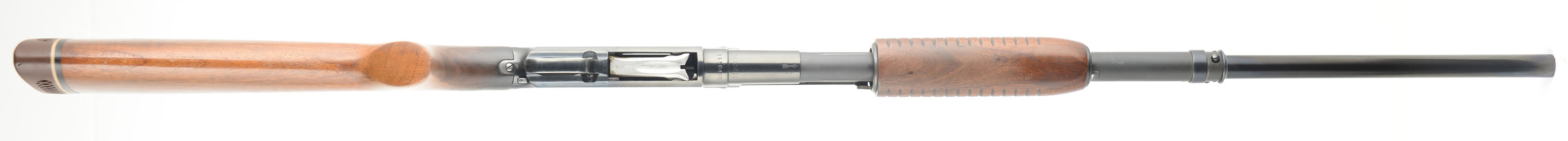 Winchester, Model 12, 12 Ga., MFG. 1951, SN: 1430420, Pump action. Marked MOD Choke, 2 3/4'', 28'' Vent. Rib barrel, The original flat pistol grip wood stocks are excellent, with minor handling marks, scratches & light contusions to the original finish, which is thinning at the wrist & belly of the forearm. The metal blue finish rates 90% overall, with the barrel starting to tone a bit plum. The ventilated rib is a Simmons rib, with a single front bead. Bore is very good. 14 5/8'' LOP over the Pachmayr White-Line ventilated recoil pad. FFL or C&R Req. - Value: 400 to 800