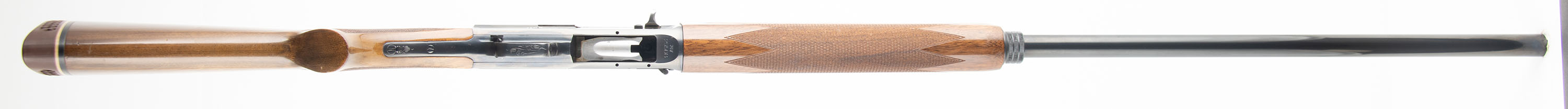 Browning (Belgium), Auto-5 Magnum Twelve, CAL; 12GA, MFG: 1974, SN: 74V29508, Semi Auto Shotgun, Choke: F, 3'' Chamber, 32'' barrel. Standard factory markings on the barrel alongside multiple proofs, marked ''MADE IN BELGIUM''. The receiver is marked ''MAGNUM TWELVE''. The full SN is marked on the bottom of the receiver. The original checkered flat pistol grip stocks are excellent. The high gloss finish is excellent. The original metal blue finish rates 97% overall. Bore is excellent. The ventilated rib holds a single front bead. Stock carries a Browning ventilated brown rubber recoil pad. LOP: 14 1/8'' overpad. FFL or C&R Req. - Value: 800 to 1400