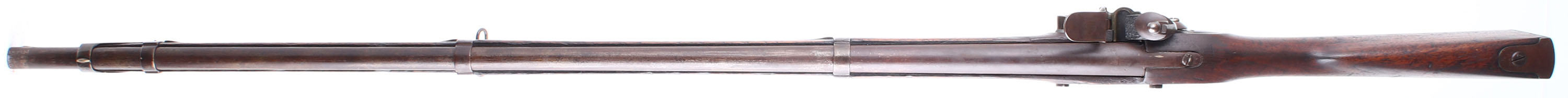 HISTORY: The M1840 Musket was the last of the US Flintlock muskets before the M1842 introduced the percussion lock. The vast majority of the M1840 muskets would be converted into percussion before they were even issued & some late production M1840s would be assembled with a percussion converted locks. Around 30,000 M1840's were produced at Springfield & almost 27,000 of those were converted to percussion at the factory. Two other manufacturers also made M1840 muskets, Daniel Nippes Company made just over 5,000 & delivered them 1842-48. Lemuel Pomeroy made around 7,000 & were delivered from 1840-46. Most of those were converted to percussion as well. The M1840 improved on the M1835 by having a longer bayonet with a retaining clasp, & had a comb in the stock making the rifle easier to aim. They were also made with thicker barrels in anticipation of rifling the barrels later on & they were correct, most of them were bored with rifling later on. There are mentions of these being re-converted to flintlock later on for collectors, but this musket appears to be one that escaped both percussion & rifle conversions & is its original configuration.