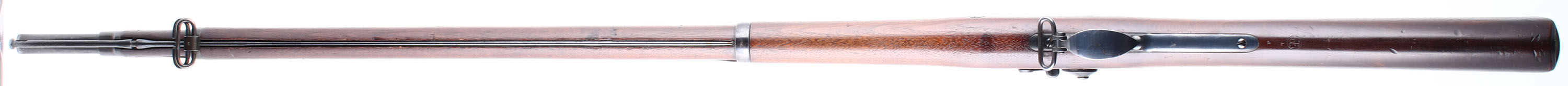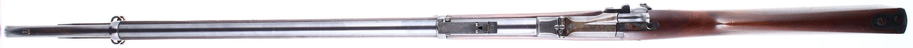 CONDITION: The straight wrist American black walnut stock is very good near excellent, but has some nicks, dings, & scratches. stock has added oil/finish. Metal to wood fitment is solid & the wood doesn't appear to have been sanded or seen heavy wear. Left side of the wrist stamped ''SWP'' over ''1889'' in a box inspector/acceptance cartouche. Metal has been re-blued/re-finished. The blued finish on the barrel rates 92% with spots of light thinning, light scratches & wear at the muzzle. The blued finish on the receiver rates 90% with spots of light thinning & some roughness under the finish. The breech block & rear barrel tang retain faded case-hardened finish with spots toning brown. The inside of the breech block retains deep case-hardened finish. The lock plate has full blue coverage with spots of thinning. The top of the breech block is marked ''US'', ''MODEL'', ''1884''. The rear of the receiver is stamped with the S/N, stamp is faded. The chamber is marked V over ''P'' over a eagles head, ''P'', ''A'', some marking slightly faded from re-blue job. The lock plate is marked with a American Great eagle stamp, ''U.S.'', ''SPRINGFIELD'', markings are slightly faded from re-blue. Upper extension of the buttplate marked US''. Both barrel bands marked ''U''. Oval knurling on hammer, serrated trigger, & has the ''three-click'' action. The bore is excellent. Bright & Mirror like with little visible wear. The barrel holds a small blade front sight with a Buffington, U-notch ladder rear sight. The stock carries a blued steel buttplate, mix of gun metal gray & blue. The rifle has both bottom sling swivels & the third stacking swivel. The rifle has the cleaning/clearing rod. Antique, No FFL Req - Value: 700 to 1400