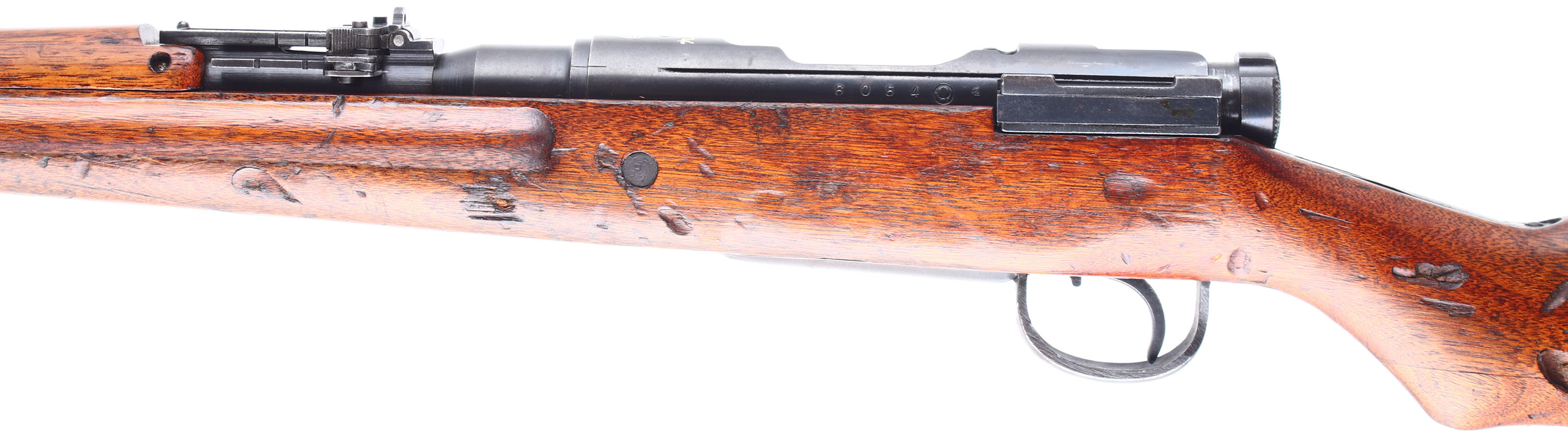 HISTORY: When Japan was switching from the type 38 to the type 99, there was a toss up on the barrel length to produce. The type 38 had a long barrel & for the cavalry & special troops, a carbine was made. To help ease manufacture & make the rifles handier for main line infantry, Japan would start testing a short rifle concept. The US & Britain adopted this with the M1903 Springfield & the SMLE respectively. This would enable Japan to ditch the rifle & carbine concept & just produce one rifle pattern for everyone, drastically easing logistics & made the guys who before carried the longer rifles happy. Testing would ultimately prove there was a negligible effect on accuracy in its effective firing range, compared to the benefits of switching to the shorter barrel. The final decision to switch would not be made before production of the type 99 began in the summer of 1940 at Nagoya Arsenal & the commercial firm, Toyo Kogyo. 38,000 total type 99 long rifles were made, 30,000 at Toyo Kogyo, & 8,000 at Nagoya. Production would run till the spring of 1941 when production shifted to the short rifle. It is speculated that once short rifle production began, the long rifles were shelved at arsenals & had their dust covers & monopods scavenged for other rifles. explaining why those accessories are rarely seen on the long rifles & why most are in pretty good condition. They would've remained on Japan's mainland & would've been surrendered at the end of the war, explaining why most of the survivors have ground off Chrysanthemums. However, some examples do have intact Chrysanthemums like this rifle here so the whole story is unknown.