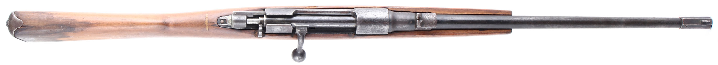 CONDITION: The original straight wrist beech wood stock is good as being cut down, sanded & oiled. Oil stains & grain pops on the buttstock around the buttplate. There are a couple small cracks around the magazine/trigger guard & upper tang. The top of the wrist has a resin filled crack repair. Bottom of forend still has channel for the folding bayonet. The metal is a mix of original blue in protected areas, gun metal gray & brown patina with a speckling of roughness throughout. Markings are slightly faded from rust/wear. The rear of the barrel is marked with the S/N, two small proofs, ''GARDONE VI'', ''1941-XIX''. The rear sight block has two small proofs on the left side & the top is marked ''CAL 6.5''. Left side of the front sight base is marked ''C.A.P.''. The firing pin/striker cap is missing & has been replaced with a modern nut & washer. The bore is very good. Its bright with strong rifling & only has some light roughness. The barrel holds a blade front sight with a fixed V-notch rear sight. The stock carries a steel trapdoor buttplate. Buttplate has roughness & pitting, trapdoor is stuck shut. Rifle is missing both sling mounts. Rifle appears to mechanically function fine. A handy little carbine that would make a great utilitarian shooter. FFL or C&R Req. - Value: 100 to 150