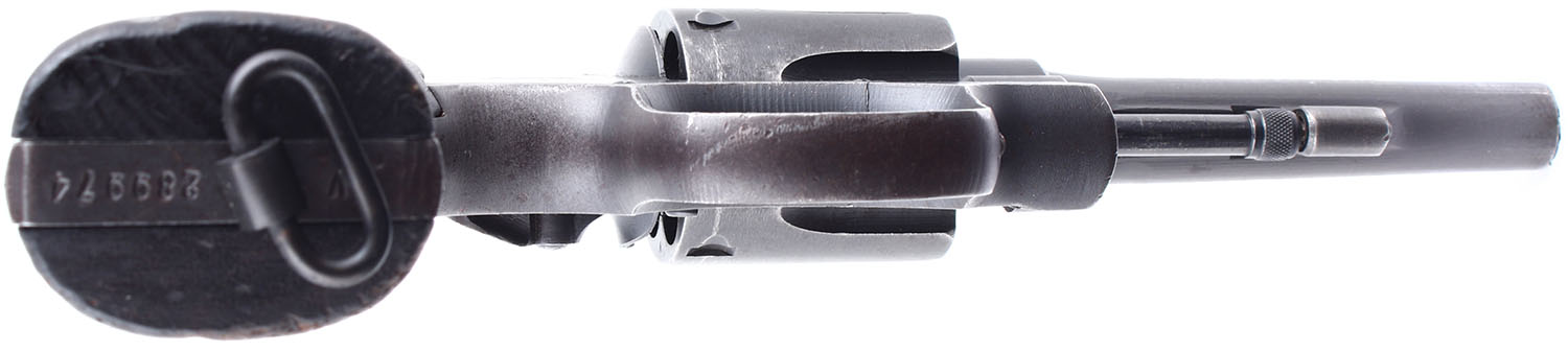 Smith & Wesson, Victory Model, CAL: 38 SPL MFG: 1942-45. SN: V289974, Double Action Revolver. 4'' barrel. The wood grips are very good with some handling wear & contusions. The parkerized finish is very good with almost full coverage, there is some wear and patina mostly concentrated high wear areas like the front and back strap of the grip. The top of the frame is marked with a US ordnance flaming bomb stamp and U.S. PROPERTY G.H.D.. The face of the cylinder is marked with an S and a V. Bore is excellent, slightly thinned but very bright rifling with little to no roughness. Mechanically solid, the cylinder has little side to side & back & forth play, the hammer & trigger mechanism functions well. Rudimentary sights, front blade sight is integral to the barrel, rear sight trough is cut into the frame. FFL or C&R Req. - Value: 300 to 900