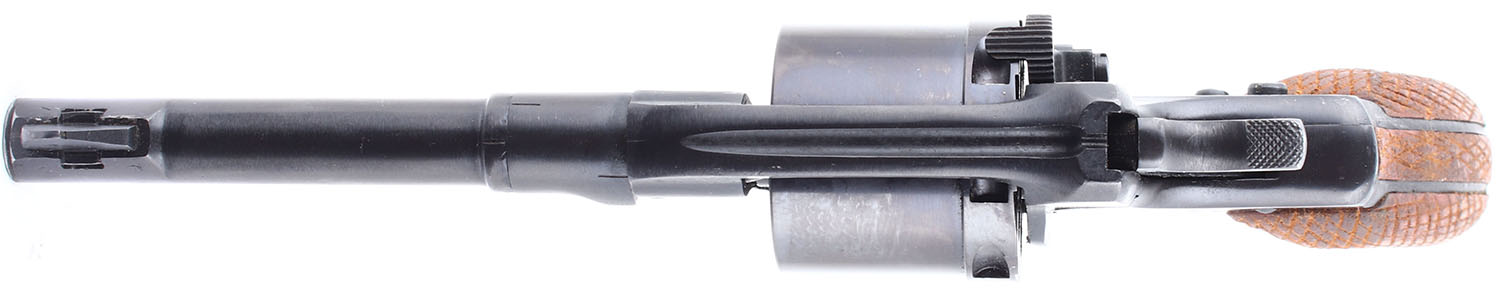 Tula, M1895 Nagant, CAL: 7.62x38R, MFG: 1918, SN: AB781 (import SN:189525956), Double Action Revolver. 4 1/2 barrel. The wood grips are very good, with some handling wear. The bluing on the frame rates 99%. Bore is excellent. Mechanically solid. Rear sight is integral to the frame, blade front sight is set in a dovetail cut on the barrel. Comes with a correct M1895 holster. FFL or C&R Req. - Value: 400 to 600