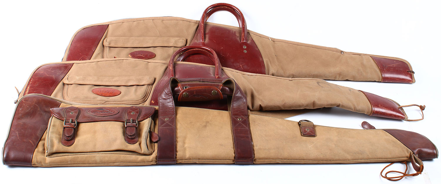 | Lot of (3) Canvas & leather trimmed zipping gun cases. 2 Boyt. ...