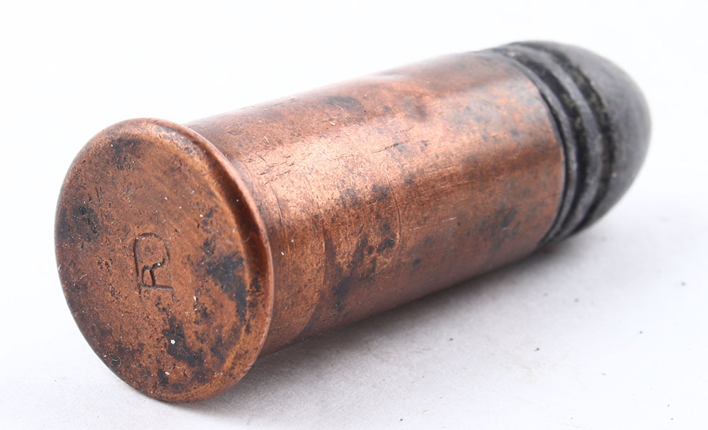 14mm Waenzel Rimfire. HS:''RD monogramed'', FN Lead. For 1867 Transformed Austrian Muskets. Grade: Very Good - Value: 80 to 160