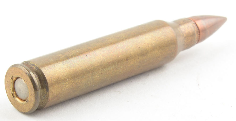 .224 e win experimental - proof load, nickel primer, 4 stake crimp GM bullet. Grade: Very Good - Value: 2 to 40