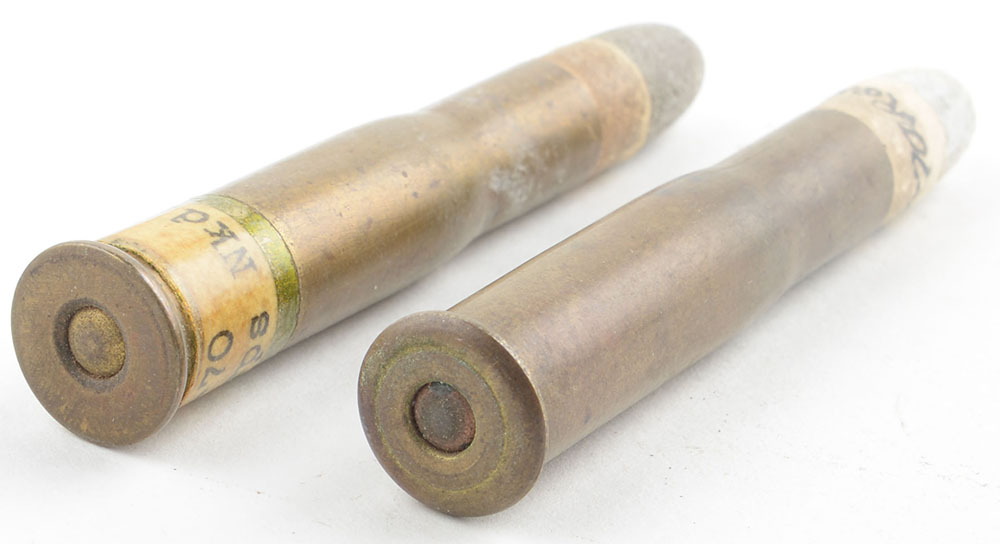 Lot of 2. 40-70 Sharps bottleneck (2.25'' case), NHS. One is FN PP Lead, the other is RN PP Lead. The latter has writing on paper patch. From a very old collection. Grade Very Good.. - Value: 10 to 40