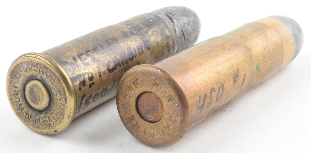 Lot of 2. 500/450 No. 1 Carbine (1.58'' case). (1) HS:''WESTLEY RICHARDS No1 CARBINE, RN Lead. (1) HS:''W.R. CARBINE No1'', RN PP Lead. Grade: Very Good - Value: 20 to 40