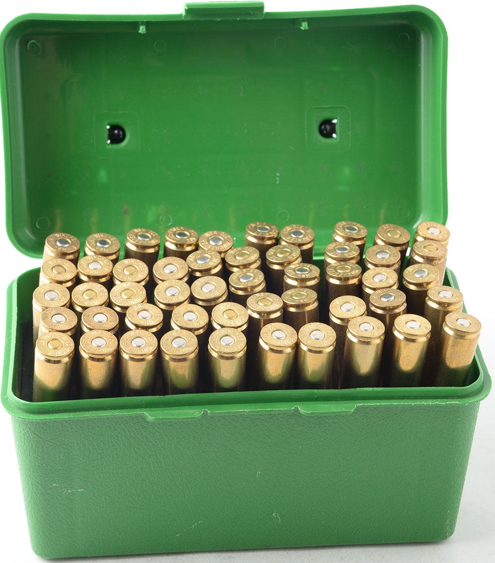 Lot of 50, 270 Winchester Short Magnum. All by Winchester. PT CJ SP. Grade Excellent. All in 1 plastic ammunition box. - Value: 50 to 150