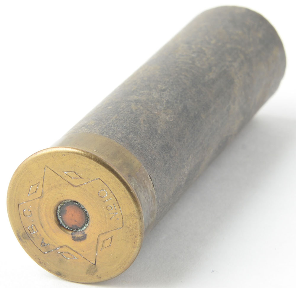 | A.B.C. 10ga, empty black paper case, 2 3/4'' OAL. Grade: Very...